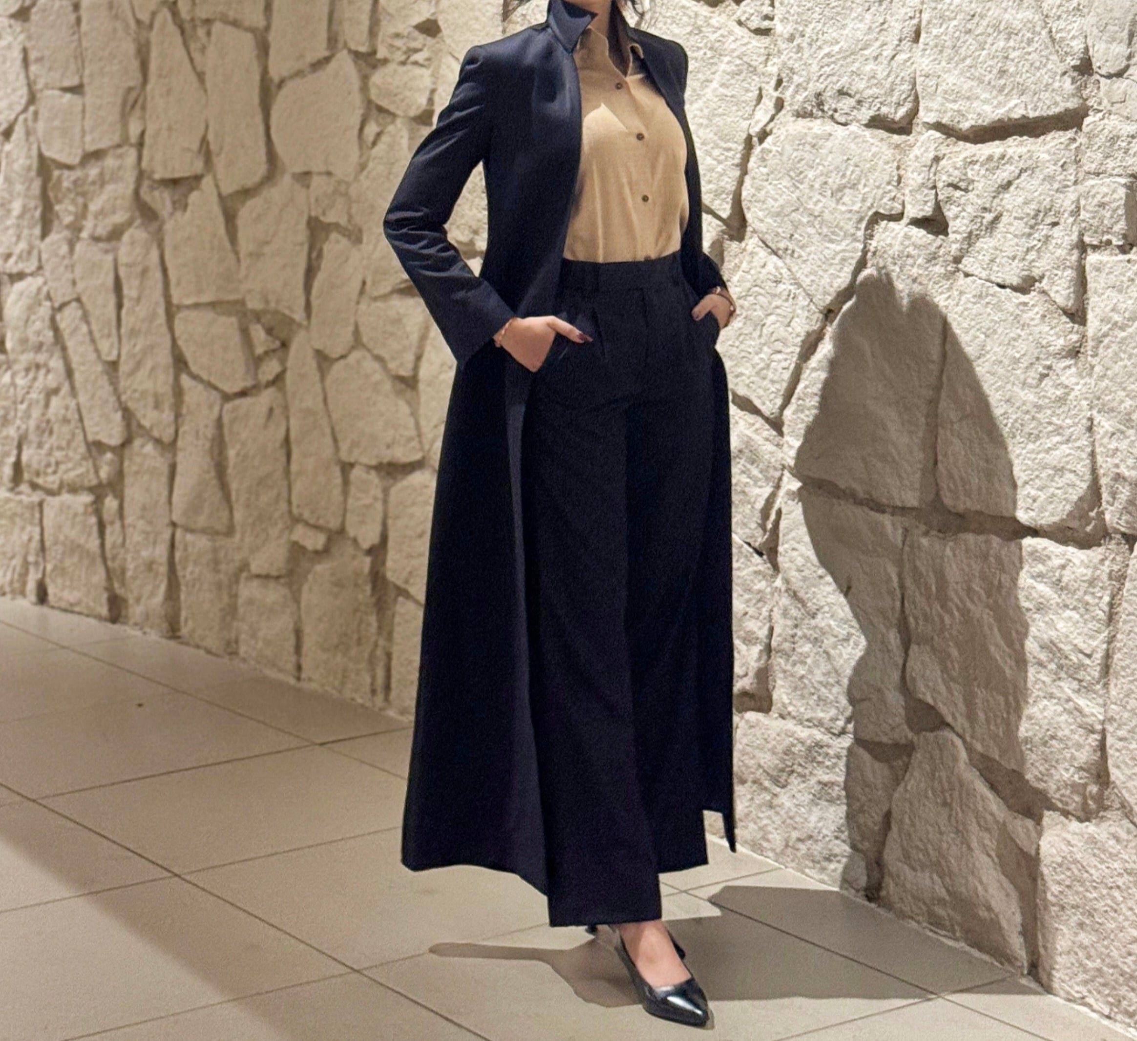 Experience the perfect blend of heritage elegance and modern relevance with our tailored long coat the refined classic, precisely crafted to your individual measurements for exceptional fit and distinction.